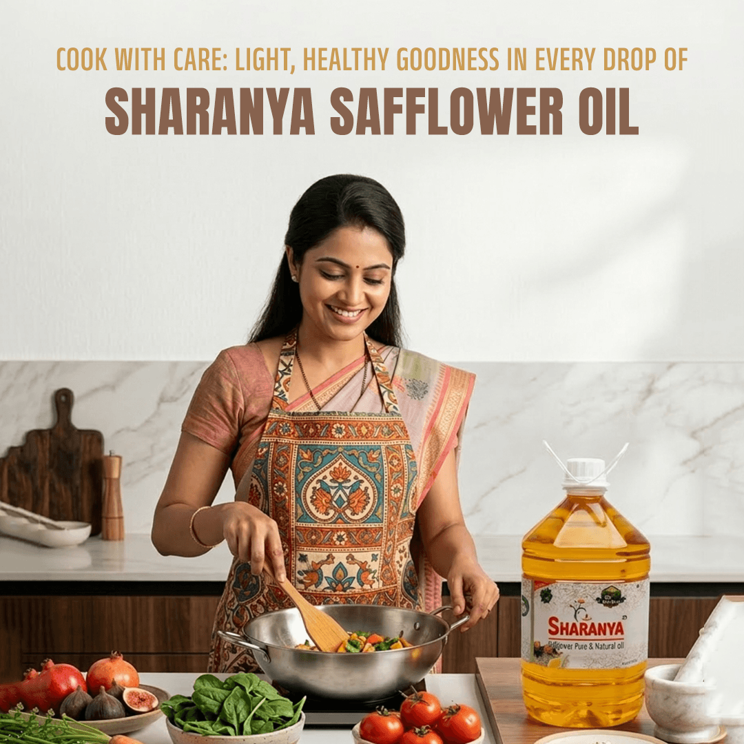 Sharanya Safflower Cooking Oil is carefully processed to maintain its natural purity and nutritional goodness. The 5-liter pack is perfect for families, restaurants, and regular household cooking.